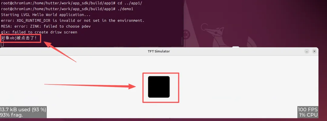 // 先创建的在下面,后创建的压在上面lv_obj_t *obj1 = lv_obj_create(lv_scr_act()); // 在下面lv_obj_t *obj2 = lv_obj_create(lv_scr_act()); // 在上面lv_obj_set_pos(obj2, 50, 50); // 偏移位置 // 设置不同颜色以便区分lv_obj_set_style_bg_color(obj1, lv_color_hex(0x000000), LV_PART_MAIN); // 黑色lv_obj_set_style_bg_color(obj2, lv_color_hex(0xFF0000), LV_PART_MAIN); // 红色运行结果:你会看到红色的方块盖在黑色方块上面。