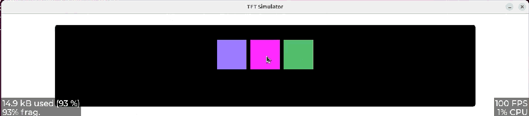 #include "lvgl.h"// 事件处理函数static void square_clicked(lv_event_t *e) { lv_obj_t *obj = lv_event_get_target(e); // 随机改变颜色 uint8_t r = rand() % 256; uint8_t g = rand() % 256; uint8_t b = rand() % 256; lv_color_t new_color = lv_color_make(r, g, b); lv_obj_set_style_bg_color(obj, new_color, LV_PART_MAIN);}void create_control_panel() { // 创建黑色背景容器 lv_obj_t *container = lv_obj_create(lv_scr_act()); lv_obj_set_size(container, LV_PCT(80), LV_PCT(80)); lv_obj_center(container); // 设置容器样式 lv_obj_set_style_bg_color(container, lv_color_hex(0x000000), LV_PART_MAIN); lv_obj_set_style_pad_all(container, 20, LV_PART_MAIN); lv_obj_set_style_radius(container, 10, LV_PART_MAIN); // 创建三个方块 lv_obj_t *square1 = lv_obj_create(container); lv_obj_t *square2 = lv_obj_create(container); lv_obj_t *square3 = lv_obj_create(container); // 设置方块大小 lv_obj_set_size(square1, 80, 80); lv_obj_set_size(square2, 80, 80); lv_obj_set_size(square3, 80, 80); // 设置初始颜色 lv_obj_set_style_bg_color(square1, lv_color_hex(0xFF0000), LV_PART_MAIN); lv_obj_set_style_bg_color(square2, lv_color_hex(0x00FF00), LV_PART_MAIN); lv_obj_set_style_bg_color(square3, lv_color_hex(0x0000FF), LV_PART_MAIN); // 去除方块的内边距、边框、圆角 lv_obj_set_style_pad_all(square1, 0, LV_PART_MAIN); lv_obj_set_style_border_width(square1, 0, LV_PART_MAIN); lv_obj_set_style_radius(square1, 0, LV_PART_MAIN); lv_obj_set_style_pad_all(square2, 0, LV_PART_MAIN); lv_obj_set_style_border_width(square2, 0, LV_PART_MAIN); lv_obj_set_style_radius(square2, 0, LV_PART_MAIN); lv_obj_set_style_pad_all(square3, 0, LV_PART_MAIN); lv_obj_set_style_border_width(square3, 0, LV_PART_MAIN); lv_obj_set_style_radius(square3, 0, LV_PART_MAIN); // 使方块可点击 lv_obj_add_flag(square1, LV_OBJ_FLAG_CLICKABLE); lv_obj_add_flag(square2, LV_OBJ_FLAG_CLICKABLE); lv_obj_add_flag(square3, LV_OBJ_FLAG_CLICKABLE); // 绑定点击事件 lv_obj_add_event_cb(square1, square_clicked, LV_EVENT_CLICKED, NULL); lv_obj_add_event_cb(square2, square_clicked, LV_EVENT_CLICKED, NULL); lv_obj_add_event_cb(square3, square_clicked, LV_EVENT_CLICKED, NULL); // 水平排列方块 lv_obj_align(square1, LV_ALIGN_TOP_MID, -90, 20); lv_obj_align(square2, LV_ALIGN_TOP_MID, 0, 20); lv_obj_align(square3, LV_ALIGN_TOP_MID, 90, 20);}