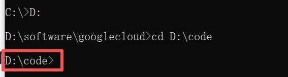 在 CMD 中切换到你想存放代码的文件夹(例如 D盘的 code 文件夹):