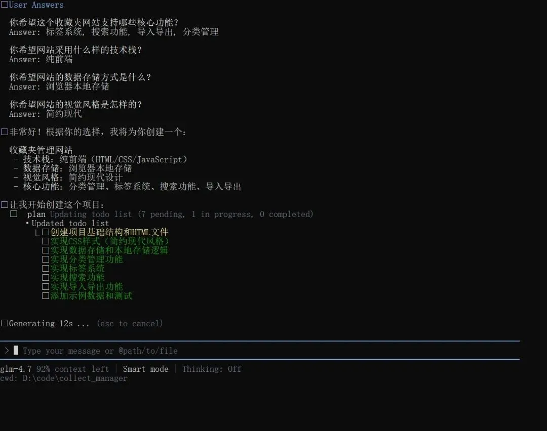 完成简单的问答后,你专属的 AI 打工人就开始干活了。大约 3-5 分钟,一个完整的网站就写好了!