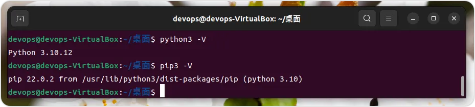要验证 Python 和 Pip 是否已正确安装,请检查它们的版本:python3 --versionpip3 --version