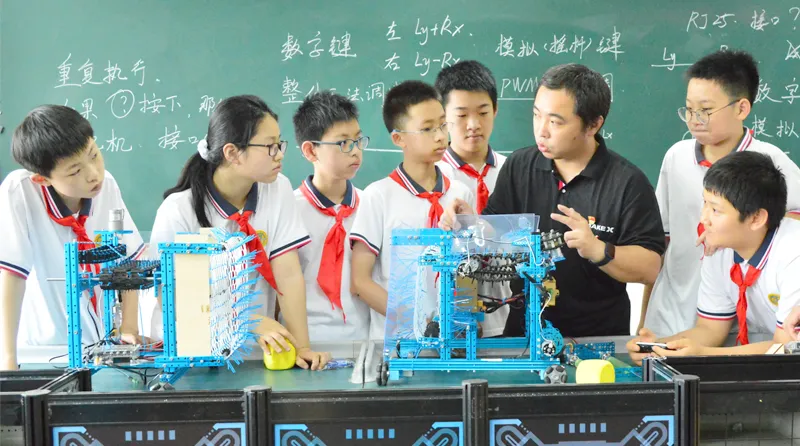 带课老师以机器人教学举例道,低年级的学生先让他们学机器人,当他们发现可以通过改编程让机器人更灵活后,学习热情瞬间被点燃。“只要一个改了代码,其他学生都会跟着研究怎么改”,学校通过任务式教学模式,鼓励学生主动探索,在解决问题中锻炼能力。