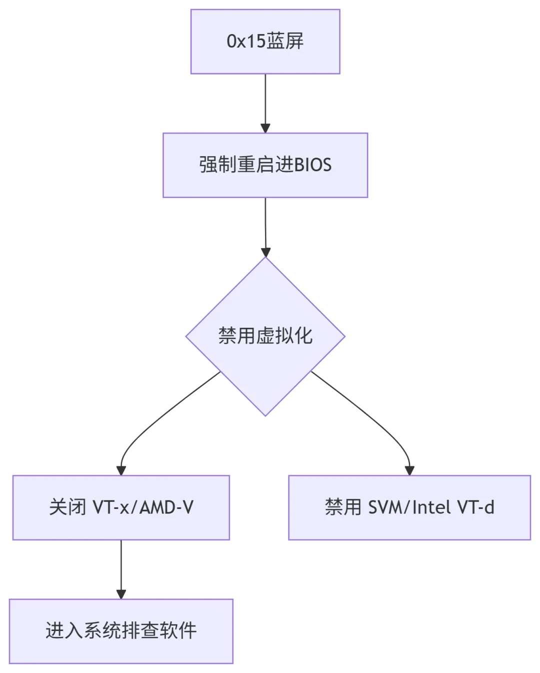 10、HYPERVISOR_ERROR (0x00000015)愿因:Windows中与硬件虚拟化层相关的严重错误,表明虚拟机监控程序(Hypervisor)在运行时遇到不可恢复的故障。可能是由于虚拟软件冲突、CPU虚拟化缺陷、内存硬件故障或者BIOS配置问题引起的。# 彻底移除第三方虚拟化工具Get-WindowsOptionalFeature -Online | Where FeatureName -like "*Hyper*" | Disable-WindowsOptionalFeature -Online -Removewinget uninstall "VMware Workstation" --force