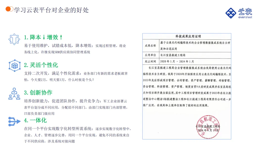 项目建设之初,延长油田公司高瞻远瞩,充分结合行业数字化建设的经验教训,并考虑未来可持续发展,经过多方面调研和对标学习,最终选择代表软件开发趋势的无代码开发方式,采用云表无代码平台作为本次项目的企业数字化底座。该平台摒弃传统的代码开发方式,不用编程,通过画表格的方式就能开发软件,不但可以提升开发效率,也让企业员工参与软件开发成为可能。