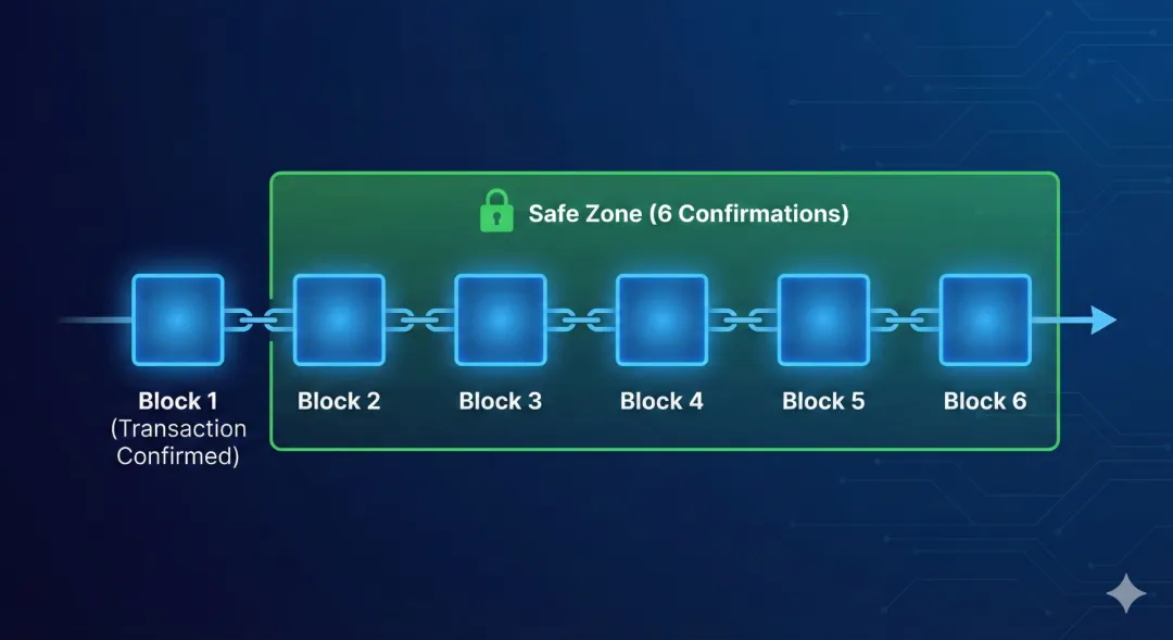 那要等多久才算安全? 肖老师给出的建议是:“Six confirmations(6次确认)。” 也就是在你的交易被打包后,还要再等后面连上5个新区块。这大约需要1个小时(每个区块10分钟) 。