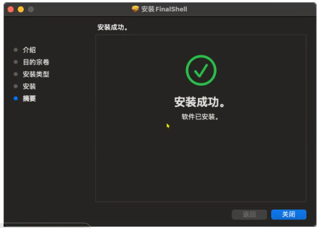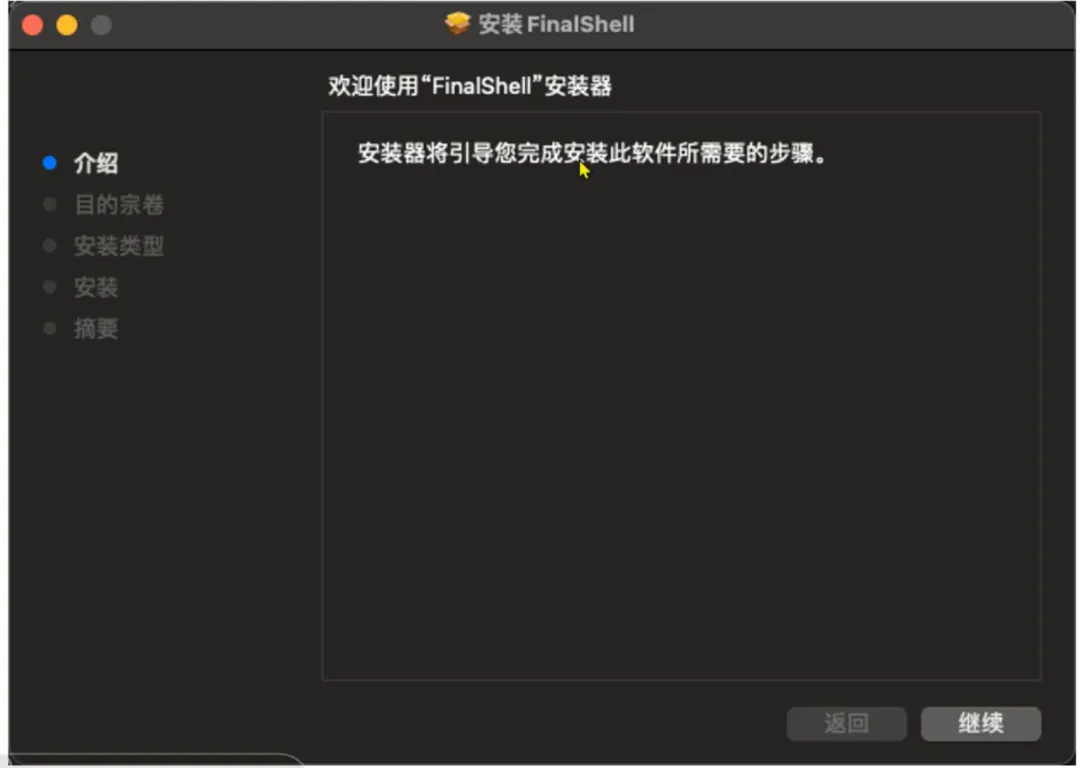 打开下载的pkg文件,按照提示下一步即可安装成功。打开FinalShell软件,配置到Linux系统的连接(Mac和Windows系统的操作一致,不再分开赘述)如果改变IP需要在FinalShell中修改连接的IP地址总结