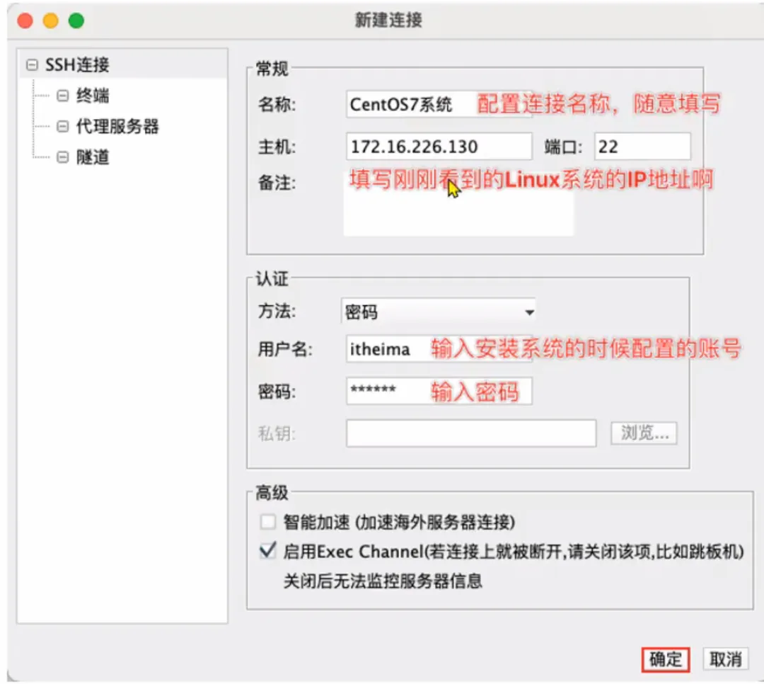 3.掌握使用FinalShell软件连接Linux操作系统不论是Windows还是Linux亦或是MacOS系统,都是支持这两种使用形式。- 图形化:使用操作系统提供的图形化页面,以获得图形化反馈的形式去使用操作系统。