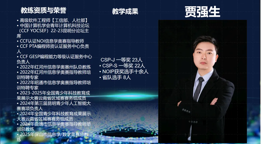 我们的教师团队全部由资深信息学教练和获奖选手组成,平均教学经验5年以上,深谙编程学习规律和学生认知特点,能够精准把握学生在每个阶段可能遇到的难点。
