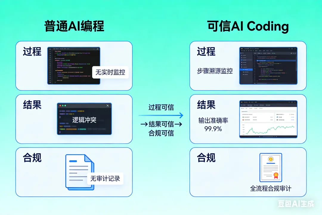 代码质量参差不齐、安全漏洞难以避免、数据隐私合规存疑……这些隐患构成了AI编程时代的“信任危机”。于是,一个新的行业标准应运而生——可信AI Coding。