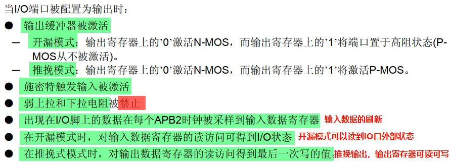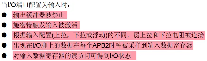 - 两个32位数据寄存器(GPIOx_IDR和GPIOx_ODR)