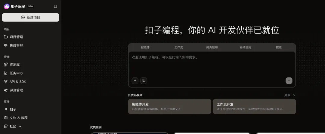 扣子编程不设计全新的自定义语法,而是基于主流编程语言(Python/JavaScript/TypeScript)制定适配平台的语法规范和结构模板,降低开发者的学习成本。