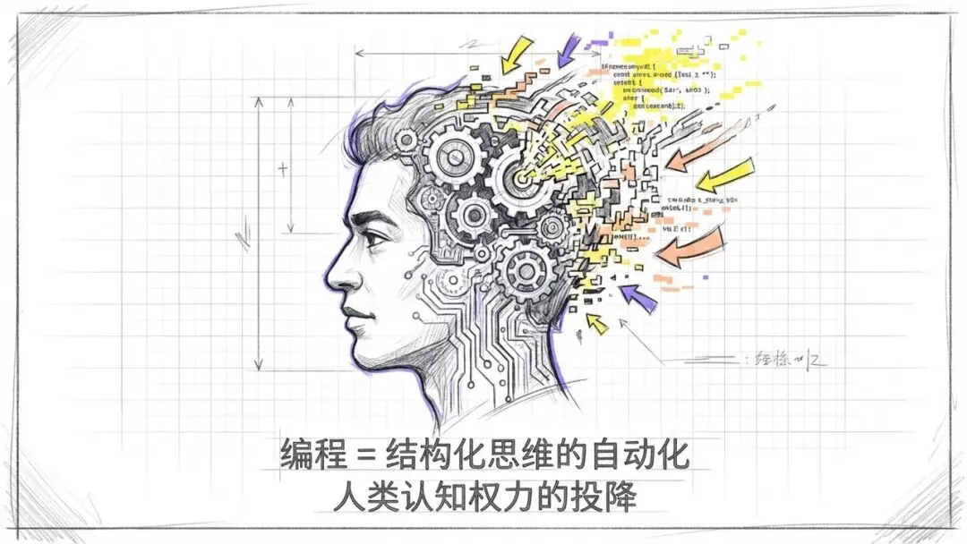 “编程,本质上就是结构化思维的自动化。要是AI也能像人一样一样编程,那人类这个物种可就玩完了。”