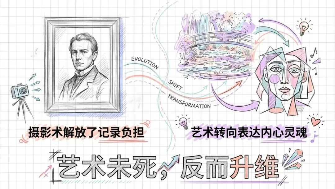 但是,历史证明,摄影术不仅没有杀死艺术,反而解放了艺术。