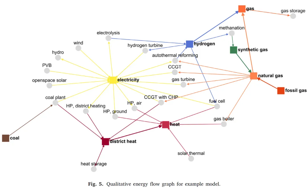 注:清晰呈现气、电、热跨载体协同路径,如电解制氢、甲烷化合成气等多能流转换过程,体现图基方法对复杂耦合关系的表征能力。