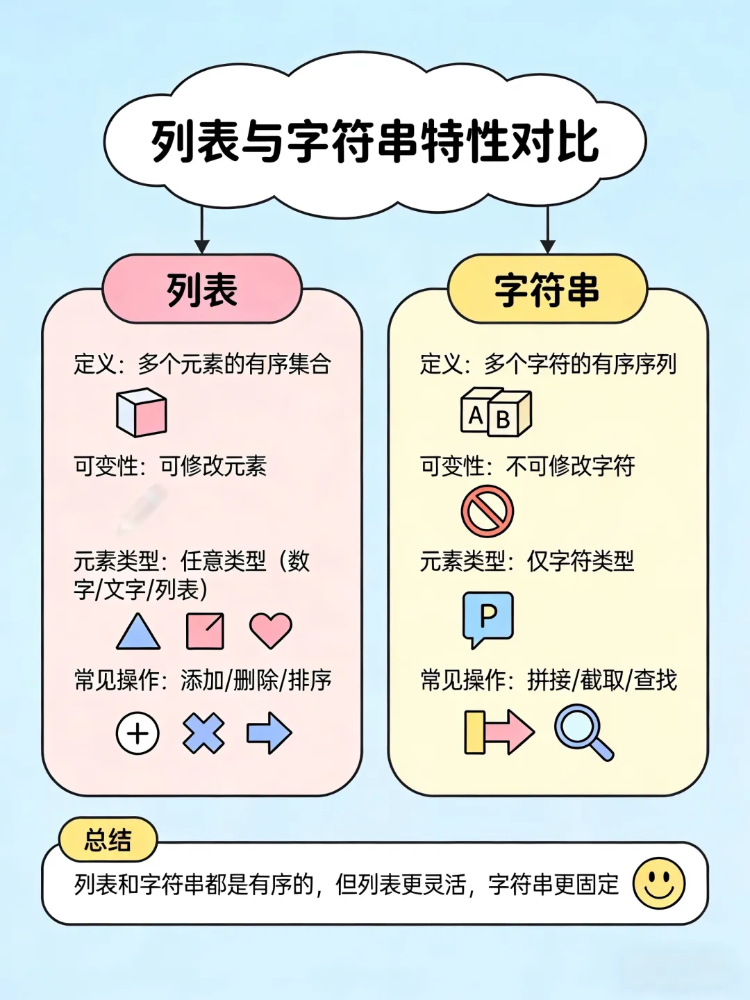 今天带来python练习,专为 初学者设计,聚焦列表操作、字符串处理、for 循环、分支判断四大核心知识点。搭配知识点流程图和核心单词总结,帮初学者边练边吃透基础,快收藏起来练一练吧!📌练习须知
