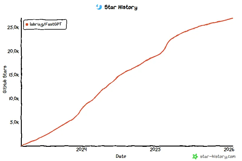 在AI应用开发的赛道上,「门槛」始终是横在开发者面前的一道坎——想搭建一个智能问答系统,既要懂数据处理、又要会模型调优,还要做复杂的流程编排,动辄需要数周的开发周期。但今天要介绍的这款开源神器,直接把这一切变得像「搭积木」一样简单:它就是FastGPT,一个基于大语言模型构建的AI Agent开发平台,仅凭可视化拖拽就能完成复杂问答系统的开发部署,目前已斩获27k GitHub星标,成为开发者圈的新晋爆款。