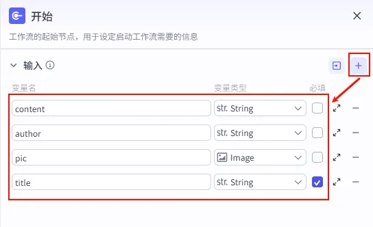 配置工作流的启动参数。