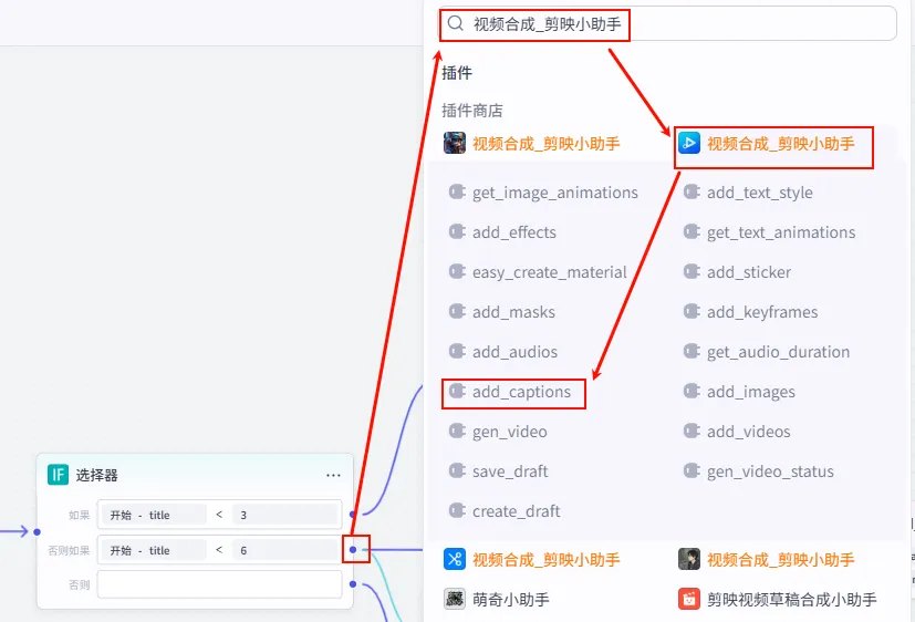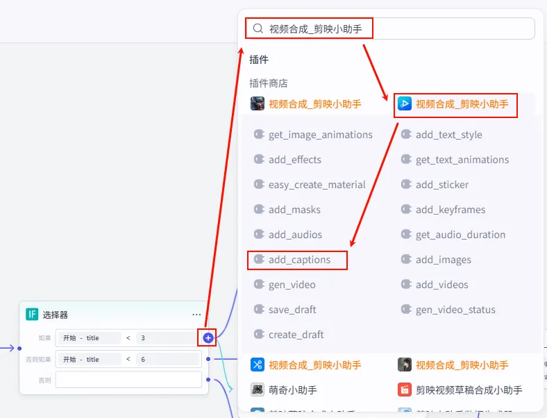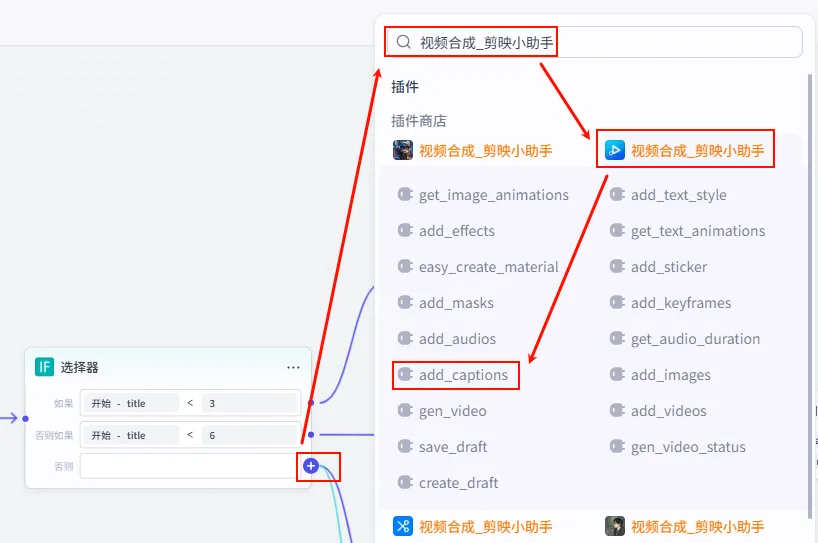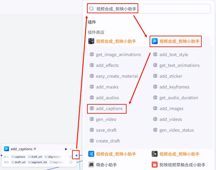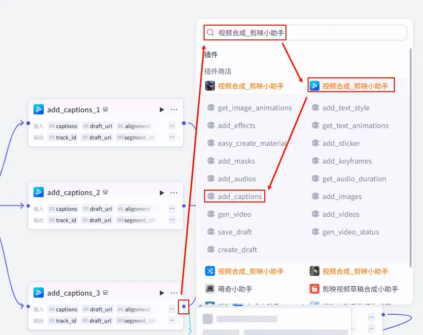 add_captions (正文字幕) 节点后的 + 号,再次添加 批量添加字幕 工具。