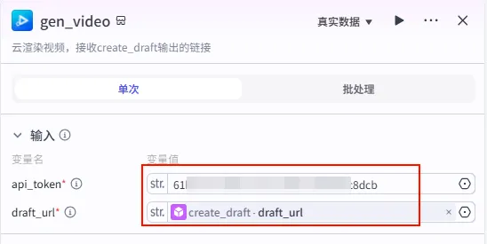 add_captions 节点输出一并连接到这个新节点的 draft_url 输入上。captions)。