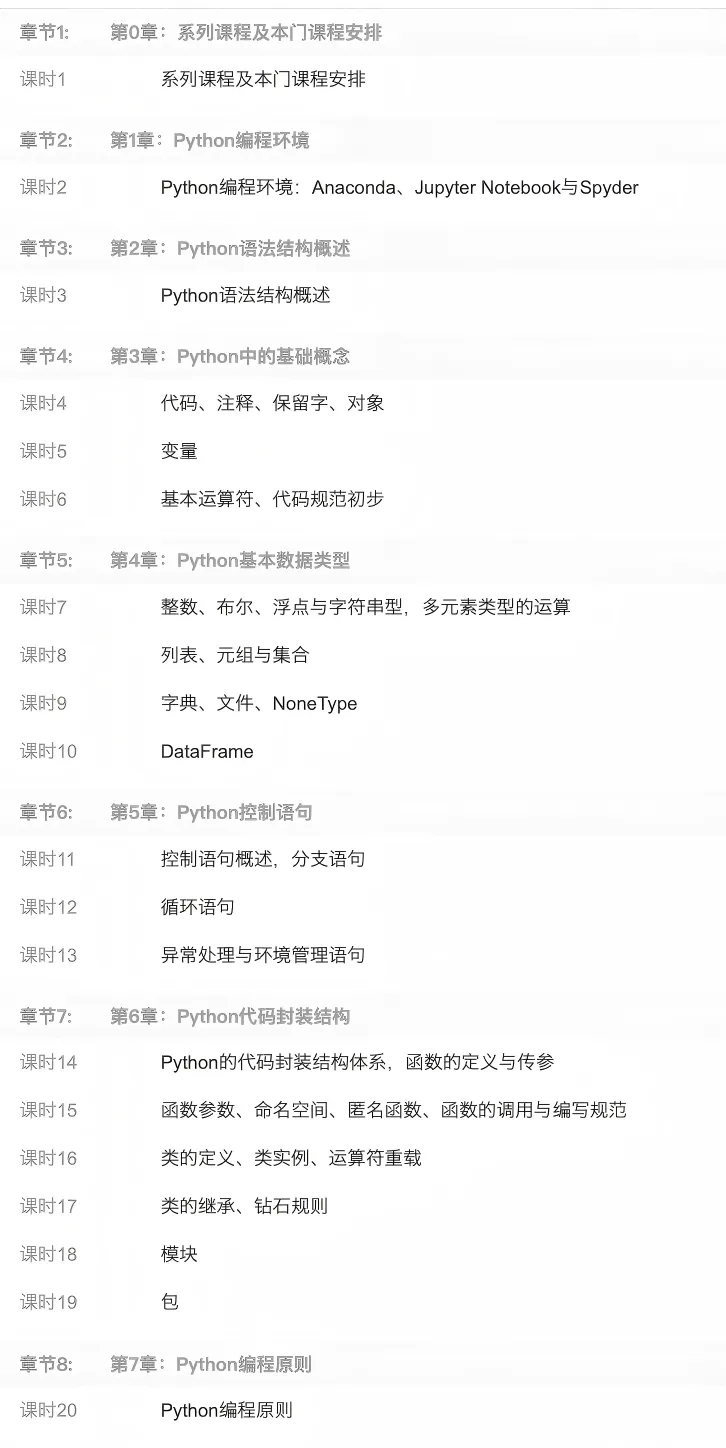 下图为“大数据计算基础”模块中Python部分的课程安排
