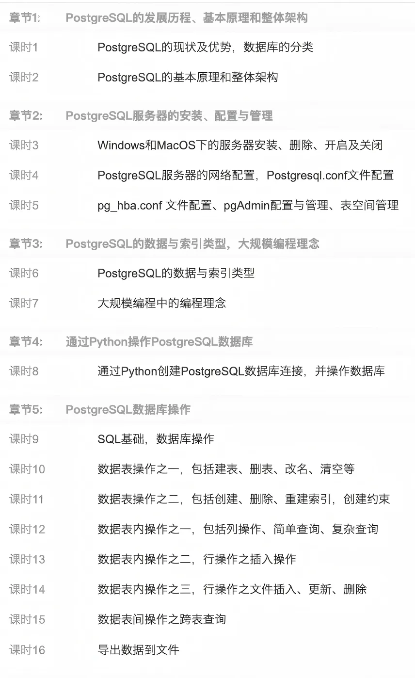 下图为“大数据计算基础”模块中PostgreSQL部分的课程安排
