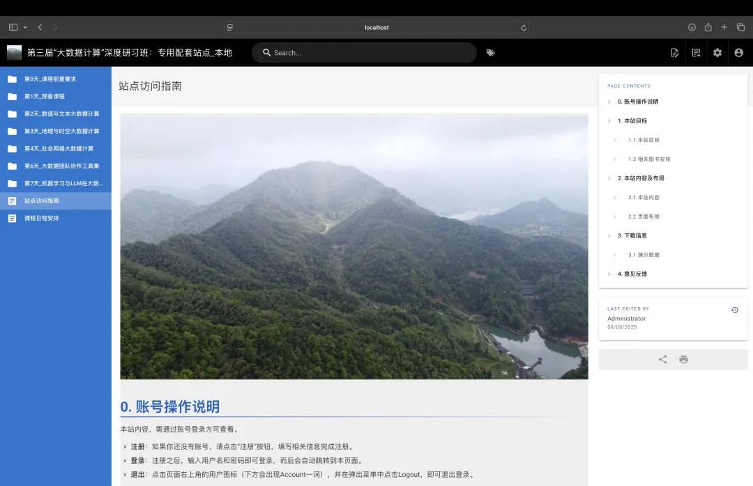 上图为团队为第3届“大数据计算”深度研习班创建的“课程代码展示站点”的登录后主页面
