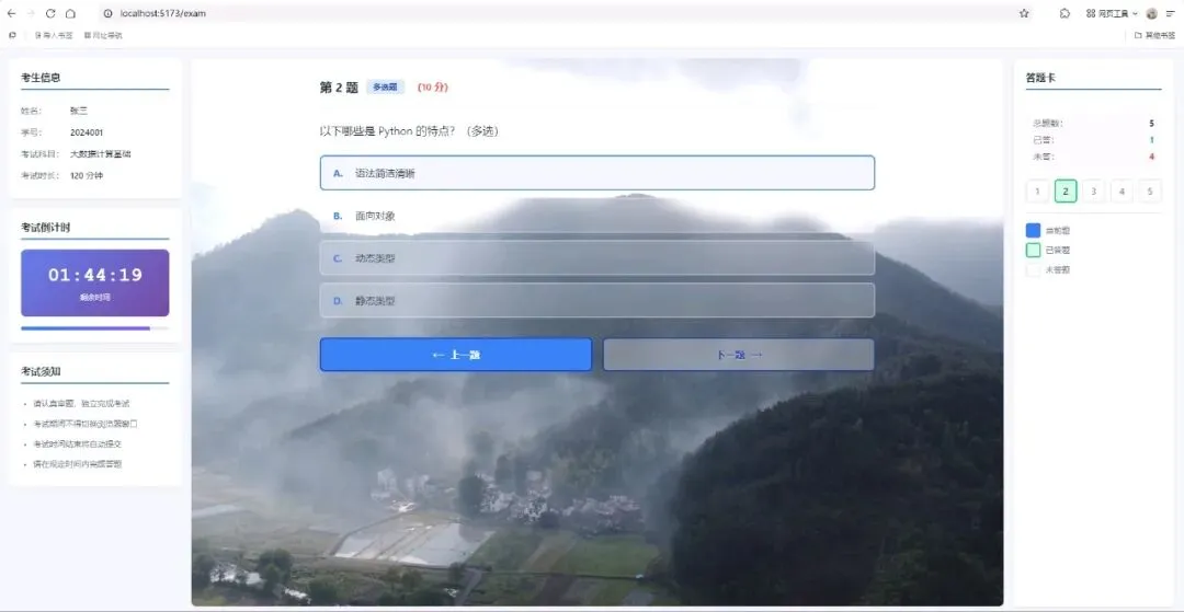 (3)一个用于当前展开的“大数据计算”系列课程的“自动在线测试系统”,能实现测试题的动态抽选、在线测试、自动批改、统计信息生成与自动输出等功能,后期还会添加学员知识水平和认知技能画像、后续学习方案规划与个性化学习材料生成等功能。