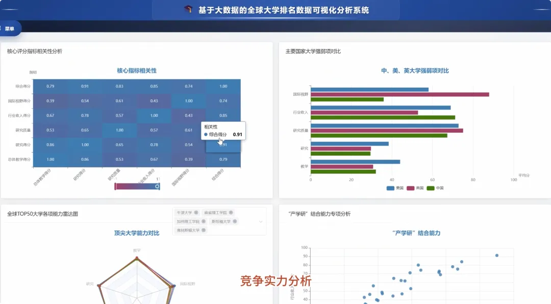 from pyspark.sql import SparkSessionfrom pyspark.sql.functions import col, countDistinct, descfrom pyspark.ml.feature import VectorAssemblerfrom pyspark.ml.clustering import KMeansimport pandas as pdspark = SparkSession.builder.appName("UniversityRankingAnalysis").getOrCreate()def analyze_country_distribution(df): country_counts_df = df.groupBy("Location").agg(countDistinct("University").alias("university_count")) sorted_counts_df = country_counts_df.orderBy(desc("university_count")) pandas_df = sorted_counts_df.toPandas() pandas_df.to_csv("/output/country_distribution.csv", index=False) print("各国上榜大学数量分析完成,结果已保存") return pandas_dfdef analyze_core_metrics_correlation(df): metrics_cols = ["Overall Teaching Score", "Research Score", "Research Quality", "Industry Income Score", "International Outlook Score", "Overall Score"] metrics_df = df.select(metrics_cols).na.fill(0) pandas_metrics_df = metrics_df.toPandas() correlation_matrix = pandas_metrics_df.corr() correlation_matrix.to_csv("/output/metrics_correlation.csv") print("核心指标相关性分析完成,矩阵已保存") return correlation_matrixdef perform_university_clustering(df): feature_cols = ["Overall Teaching Score", "Research Score", "Research Quality", "Industry Income Score", "International Outlook Score"] assembler = VectorAssembler(inputCols=feature_cols, outputCol="features") assembled_data = assembler.transform(df.na.fill(0, subset=feature_cols)) kmeans = KMeans(k=4, seed=1, featuresCol="features", predictionCol="cluster") model = kmeans.fit(assembled_data) clustered_df = model.transform(assembled_data) result_df = clustered_df.select("University", "Location", "cluster") result_pandas_df = result_df.toPandas() result_pandas_df.to_csv("/output/university_clusters.csv", index=False) print("大学聚类分析完成,结果已保存") return result_pandas_df