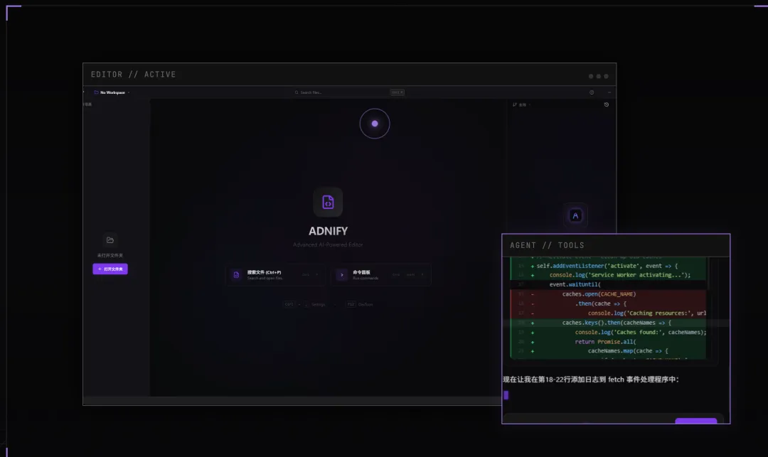 在 AI 编程工具的赛道上,Cursor 和 Windsurf 确实很强,但它们也有很多让人抓狂的地方: AI 修改代码时经常因为缩进对不上而失败; 多文件操作时像老太太过马路一样慢(串行执行); 遇到长对话直接“失忆”或者报错……最重要的是,它们是闭源的,你的习惯只能被迫去适应它们。今天介绍的 Adnify,就像是一个充满反骨的开源极客。它不仅要把这些痛点全部解决,还要给你一个颜值炸裂的开发环境。GitHub:https://github.com/adnaan-worker/adnifyAdnify 是一个轻量级、高定制化的 AI Agent 编辑器。 它不是简单的 VS Code 套壳,它是为了让 AI 深度参与开发流程而重新设计的。它内置了 23 种工具,支持从简单的问答到复杂的项目级任务规划。1.“智能替换”的究极进化 (Smart Replace)用过 Cursor 的都知道,AI 生成的代码如果缩进稍微不对,或者少了几个空行,Apply 就会失败。 Adnify 为了解决这个问题,简直是丧心病狂——它实现了 9 种容错匹配策略。 从“精确匹配”到“模糊匹配”,再到“上下文感知匹配”,它会像拼图一样,想尽一切办法把 AI 写的代码正确地塞进你的文件里。