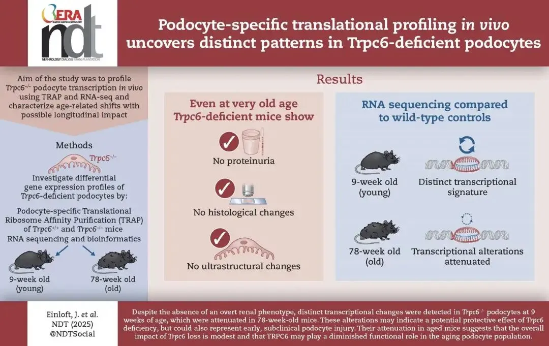 📜Title: Podocyte-specific translational profiling in vivo uncovers distinct patterns in Trpc6-deficient podocytes 🌐Paper: https://doi.org/10.1093/ndt/gfaf267