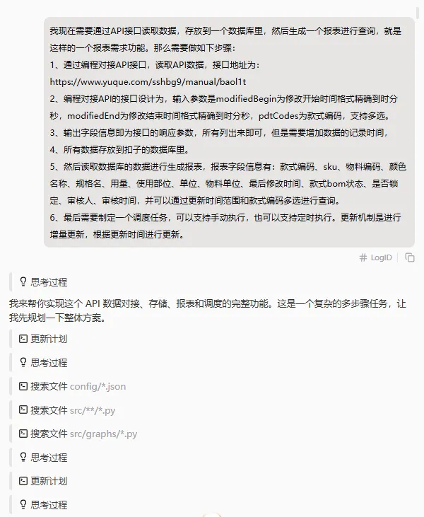 有了详细的字段说明文档,扣子的回复变得更加详细和准确了。它不仅生成了完整的API调用代码,还提供了数据处理和图表生成的实现方案。