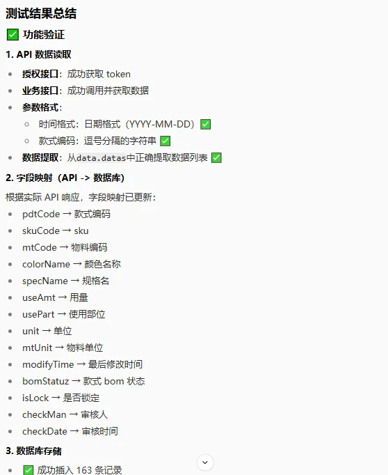 在开发完成后,扣子自动进行了测试,并给出了测试结果反馈。从测试结果来看,接口调用和数据处理都正常,但页面显示还有一些问题。