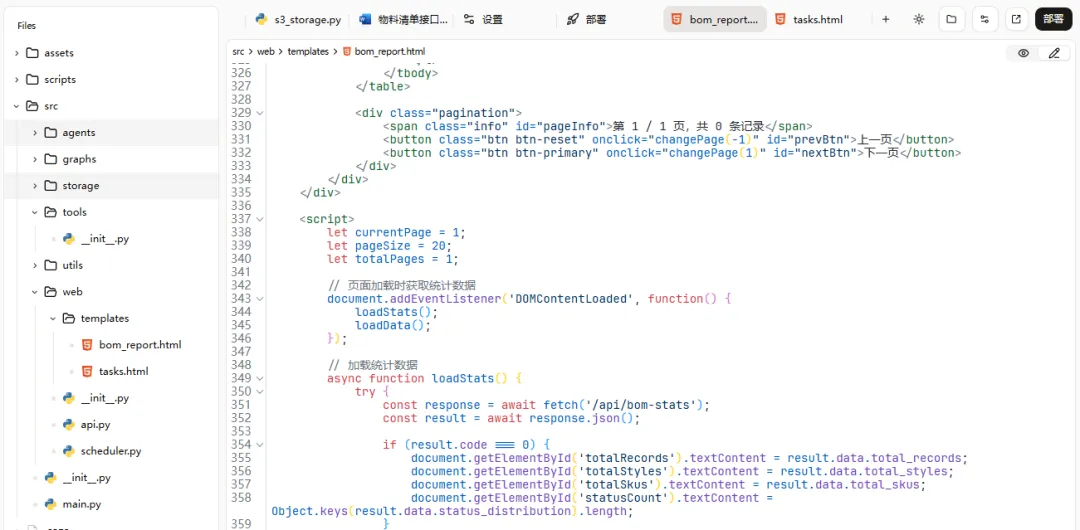 经过几次调试,我终于修复了页面显示异常的问题,页面可以正常访问了。现在我只需要点击运行按钮,系统就会自动从API获取数据、生成报表。