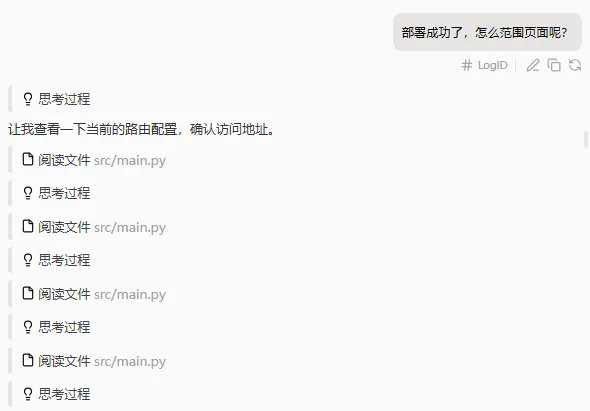 在部署页面后,我发现无法正常访问。于是我向扣子提问,它给出了部署后访问不了页面的解决方案。