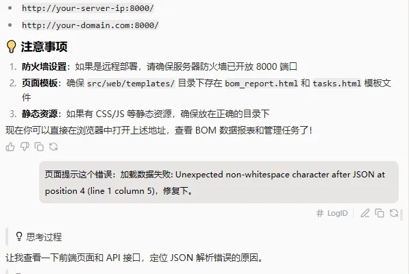 在访问页面时,我发现页面显示有问题,有些数据没有正确加载。于是我向扣子反馈了这个问题,它给出了页面显示异常的解决方案。