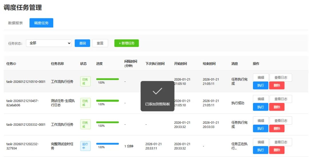 扣子根据我的需求开发了一个页面,包含报表展示和任务管理功能。页面的布局和设计都非常简洁美观,符合我的预期。