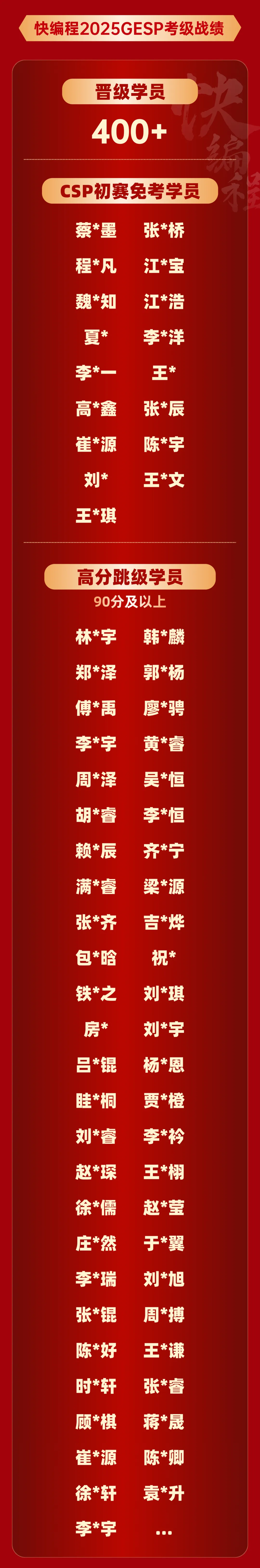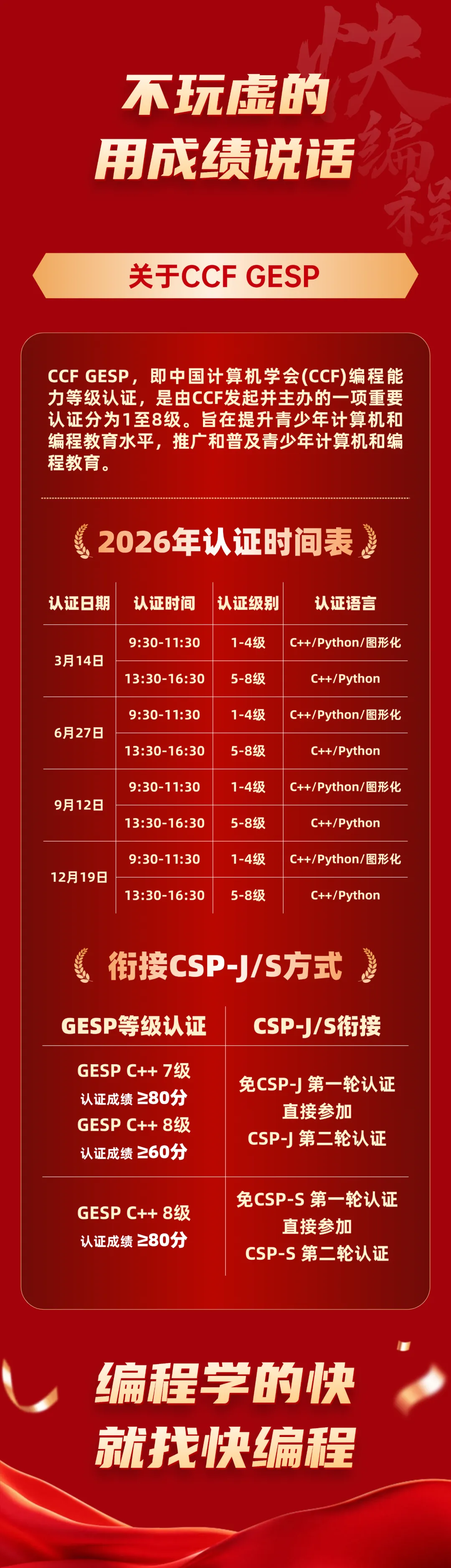 我们已经有完整从GESP一级到八级的考级密训,帮助孩子稳稳高分通过。