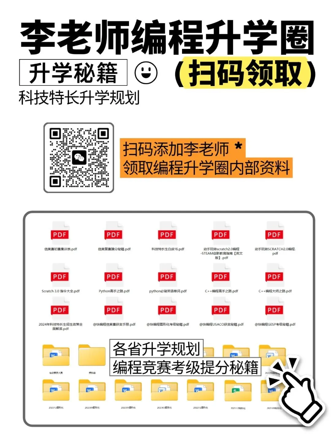 如果到现在考级成果不是很理想,甚至还不清楚孩子学编程的具体学习规划,一定要扫描下方二维码,我发一份GESP考级秘籍给你。让你的孩子学编程不走弯路!