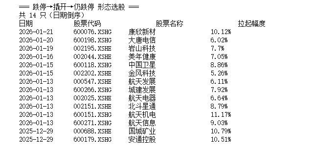 Day1 跌停→被撬开→振幅>4%(无论是否封回跌停)