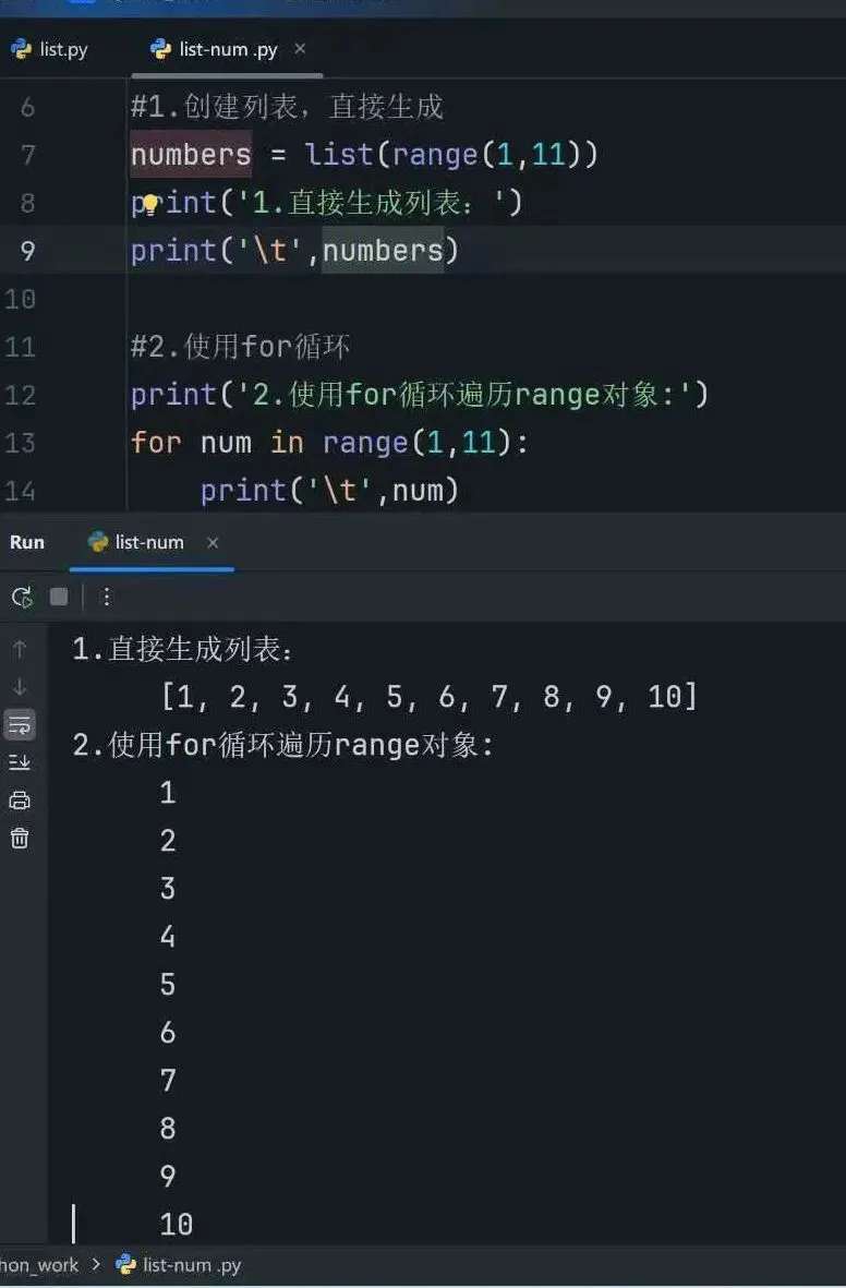 1.使用range()函数生成1—10的数,并打印