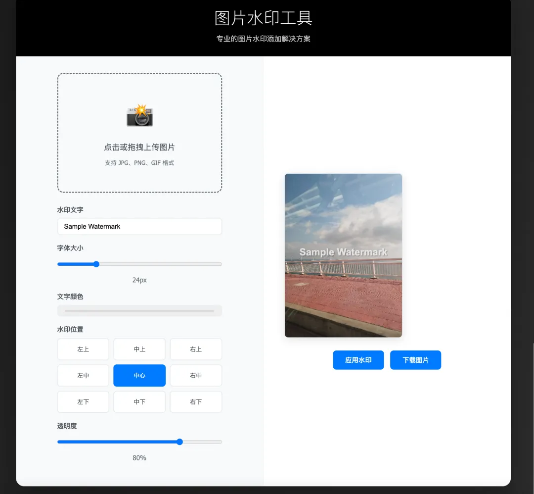 网友留言说到:分享的某某管理系统,前后端项目,对于初学者,学习曲线太陡了。今天分享的,用 Trae 做的一个小工具:图片加水印。