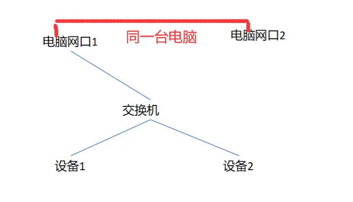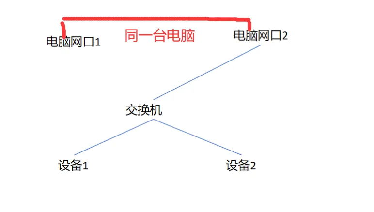 1台PC(开发机,2个物理网卡)2个终端设备1个交换机PC和终端设备之间是有自动发现协议的,UDP广播发送接收实现自动发现这种情况只能发现1台设备,另1台设备无法发现。(网友已经做了遍历网卡发送UDP自动发现指令)这种情况也是正常的,可以发现2台设备,没有任何问题。网友发了这个简易的拓扑图和现象描述后,跟我讲,他头都大了,跟同事拉扯了23天,还是没找出问题原因。于是偶遇找到了我。分析原因