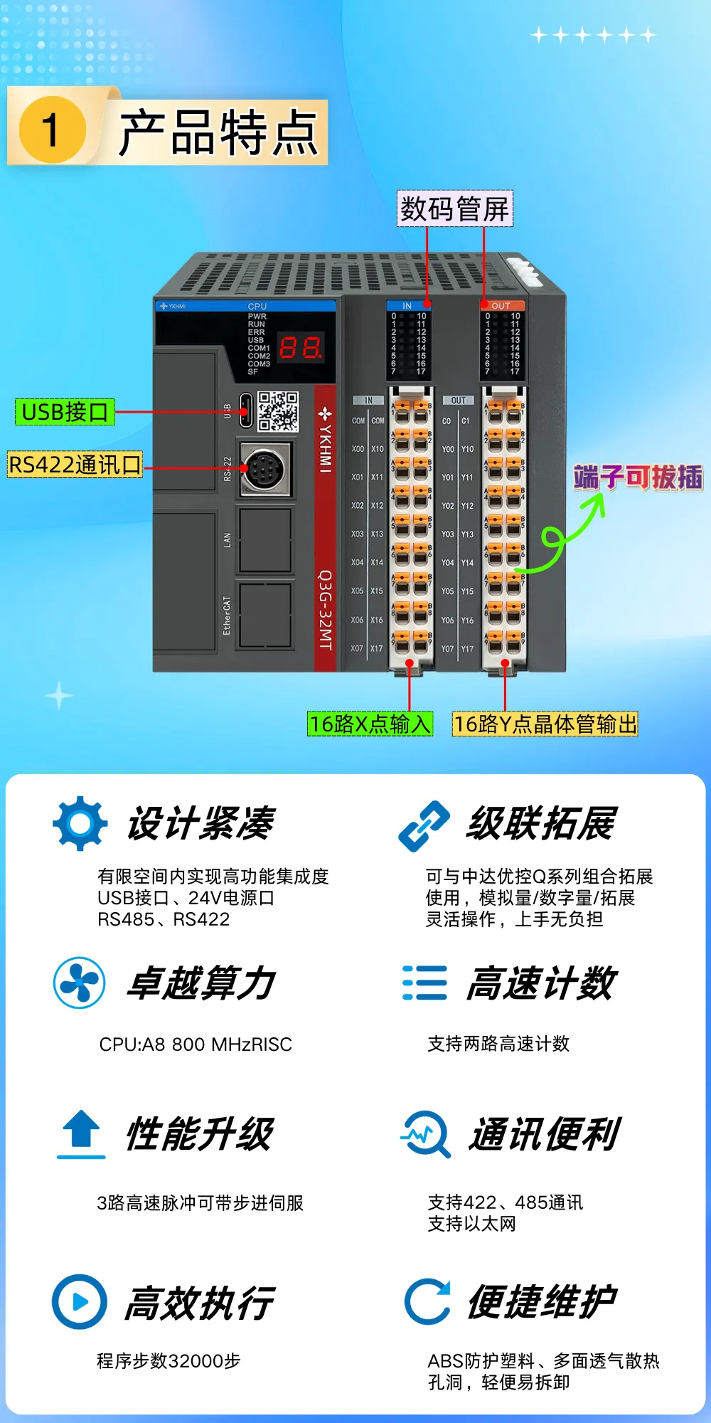>中达优控——可编程控制器PLC新品:Q3G-32MT