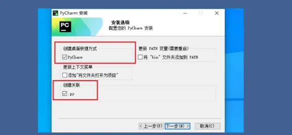 3.根据需要勾选,第一个勾是桌面快捷方式,第二个是设置为.py文件默认打开应用的意思,然后下一步