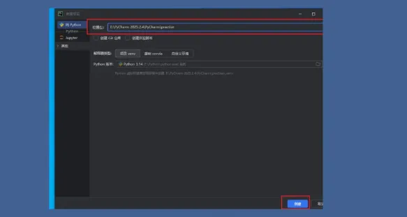 4.然后改一下文件的存储位置就行,方便你后期好找,我这里特意新建了个practise的文件夹来放,然后点创建