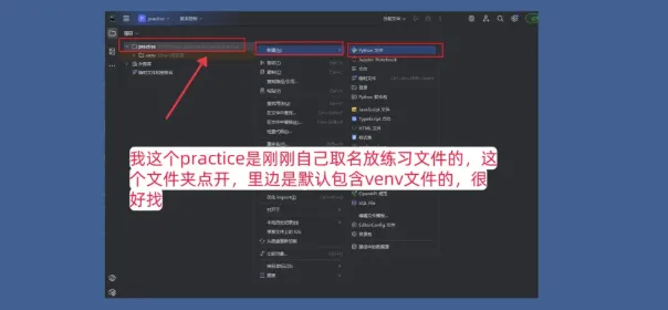 5.新建Python文件,第一列那个文件夹右键,然后点新建-Python文件