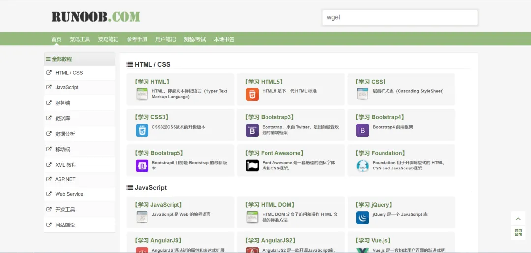 菜鸟教程(www.runoob.com)提供了编程的基础技术教程,相信很多同学 都是通过 菜鸟教程入门