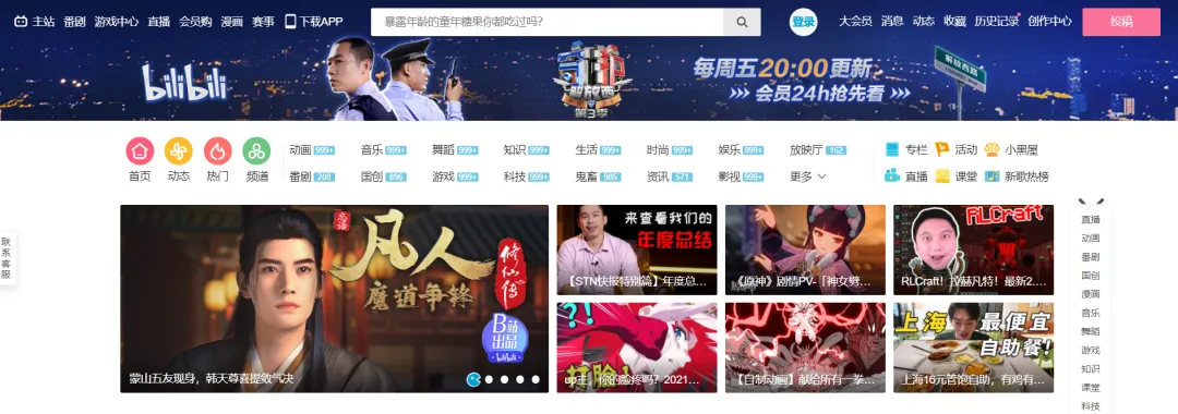 8. B站https://www.bilibili.com/没有广告的弹幕二次元视频网站,同样是中国最大视频学习网站,在上面总能找你需要的视频教程。关键是免费没有广告