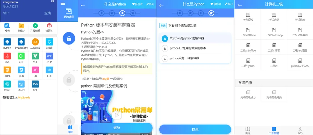 9. 老曾python教程完成http://dida100.com/it老曾写的python入门教程通过简短的课程和有趣的小测验进行学习冲浪,展示你的it编程技能。(全部免费)