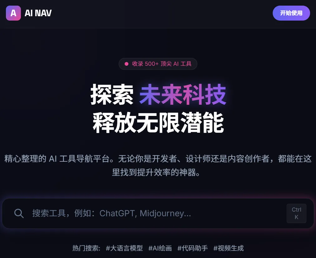 创建一个导航站的落地页HTML,使用 frontend-design skill